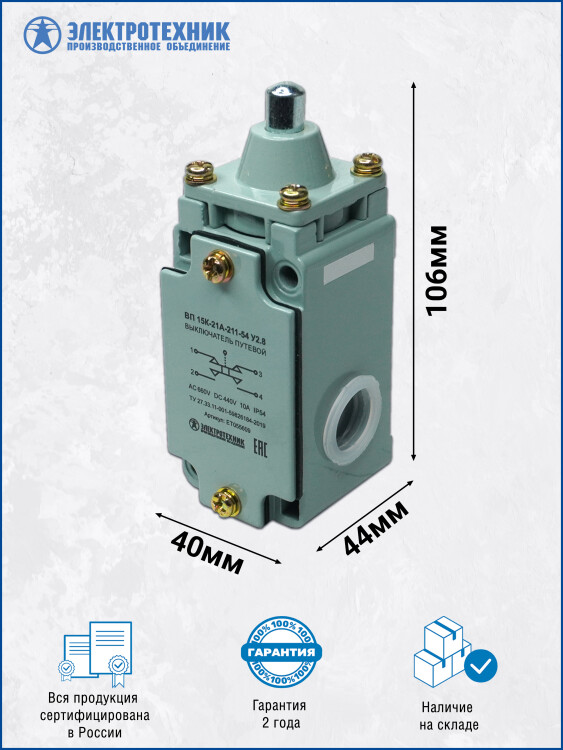 Выключатели путевые серии ВП 15 предназначены для применения в электрических цепях управления, сигнализации и контроля относительного положения подвижных частей механизма в пространстве.