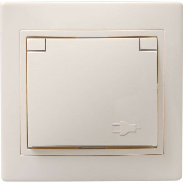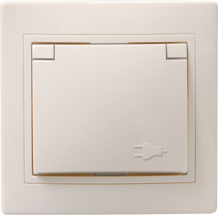 Розетка одноместная IEK ERK12-K33-16-DM "Кварта" (16 А) скрытой установки, с заземлением и защитными шторками, c крышкой, бежевый