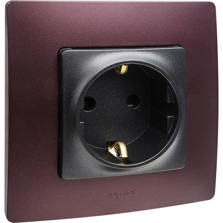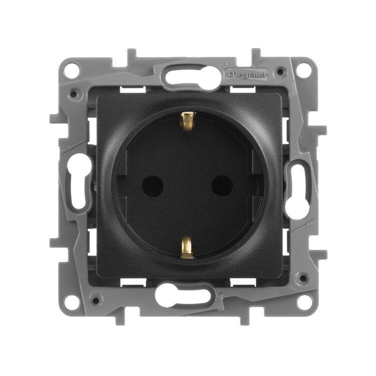 Розетка одноместная Legrand Etika 672622 (винтовые клеммы) c заземляющими контактами и защитными шторками, антрацит