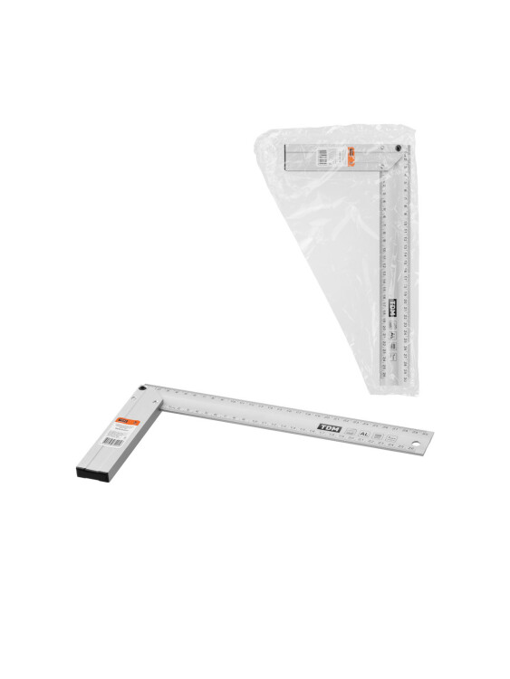 Назначение: Проведение разметочных работ Измерение длин предметов Применение: В проектировании: составление чертежей и схем В производстве: разметка заготовок, контроль размеров готовой продукции ( габаритов, углов) Преимущества: Высокая точность нанесения разметки благодаря постоянному контролю на производстве. Не подвержены коррозии. Двухсторонняя шкала ( см/дюймы ). Материалы: Угольники - алюминиевый сплав; Линейки - нержавеющая сталь