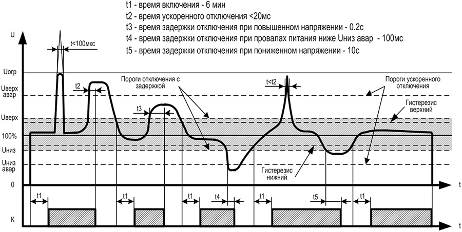 | Порог ускоренного отключения нагрузки при снижении напряжения ниже нижнего критического порога Uниз.кр., В | 80 ±10 |