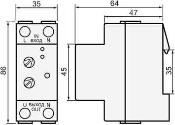 Устройство устанавливается на монтажную DIN-рейку шириной 35 мм (ГОСТ Р МЭК 60715-2003) с передним подключением проводов питания коммутируемых электрических цепей.