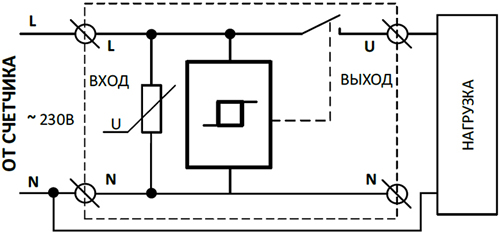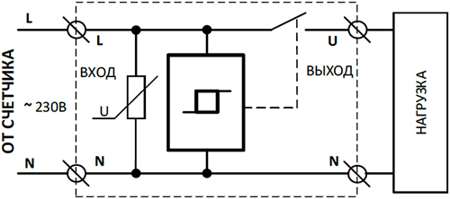 При включении УЗМ по нижеприведенной схеме 3 возможно дистанционное управление нагрузкой (функция импульсного реле).