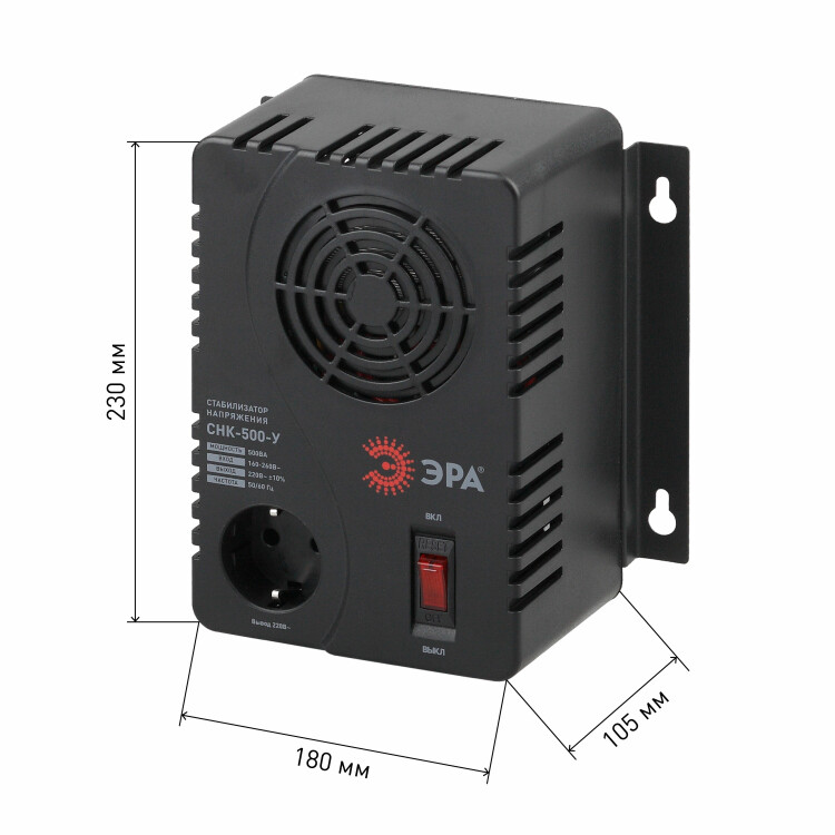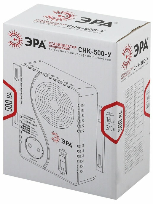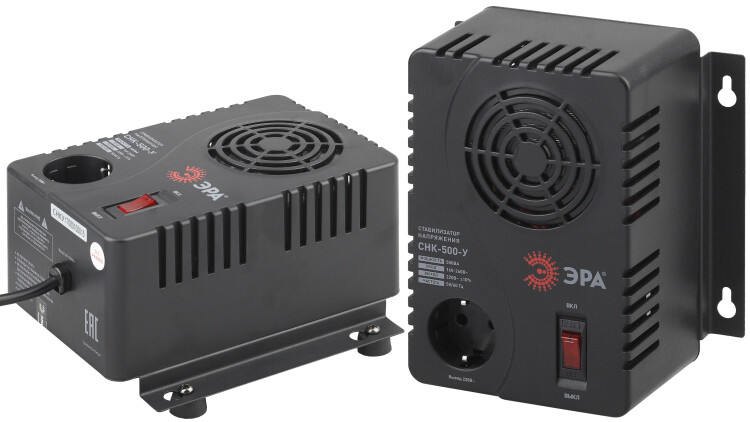Стабилизатор напряжения компактный однофазный релейный цвет чёрный модели СНК-500-У. Номинальные характеристики (полная мощность / диапазон входного напряжения): 500ВА 160-260В . Предназначен для поддержания стабильного однофазного напряжения питания бытовых приборов при отклонениях значений сетевого напряжения. Выбирая стабилизатор, нужно знать, какое электрооборудование будет к нему подключено: один прибор, группу приборов (наиболее чувствительных к перепадам напряжения в сети) либо вся домашняя (офисная) техника. Затем необходимо рассчитать суммарную мощность защищаемых электропотребителей. Основное условие выбора мощности стабилизатора напряжения - суммарная мощность подключаемой к нему нагрузки не должна превышать полной мощности самого стабилизатора (в противном случае автоматика стабилизатора будет их просто отключать). Точные значения мощности можно узнать из паспортных данных Вашего конкретного потребителя. Стабилизатор подбирается с запасом в 25-30% к его полной мощности.