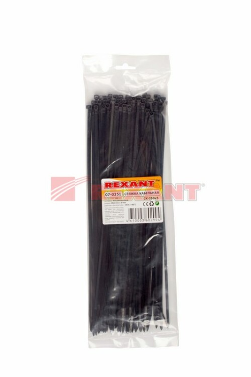 Хомут 350*4,8мм нейлон черный Rexant 100шт