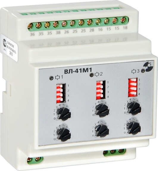 Трехканальное реле времени ВЛ-41М1 имеет 3 совершенно независимых канала установки времени срабатывания исполнительных реле. Каждый канал выполняет одну из двух функций: задержка включения или формирование импульса и снабжен управляющим входом для запуска или перезапуска. Реле снабжено светодиодной индикацией срабатывания реле, имеет широкий диапазон установок времени (0,1с...99 час). Напряжение питания от 24В до 220В постоянного или переменного тока.