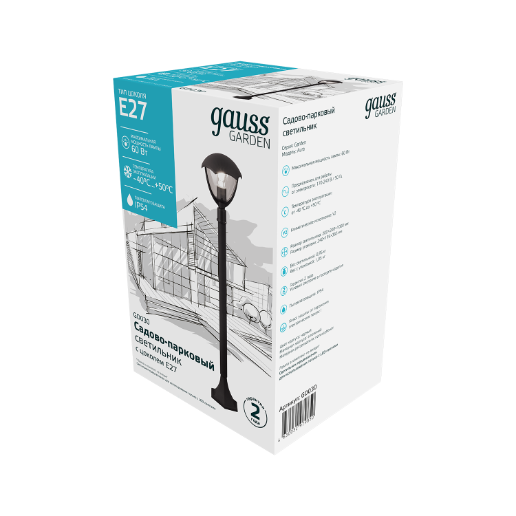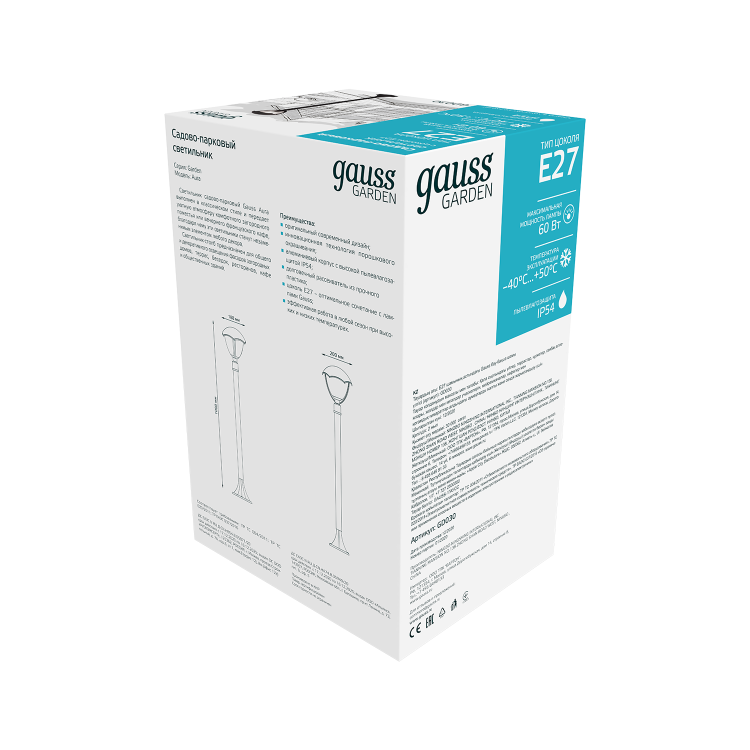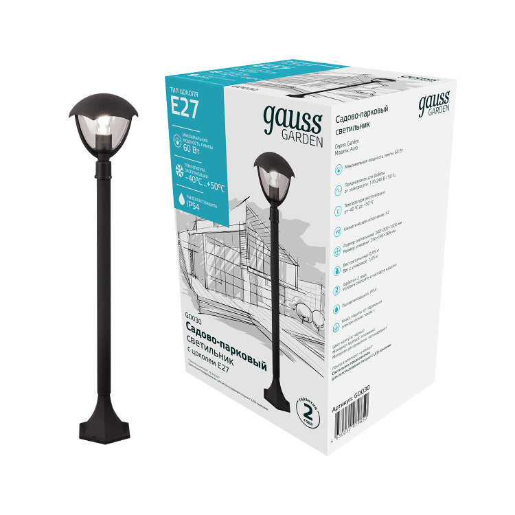 Светильник садово-парковый Gauss Aura столб высотой 1м - это отличное решение для освещения парковых дорожек, скамеек и садовых кабинетов для подсвечивания вечерних чаепитий. Они создают завершенность ландшафтного образа Старинный парк и хорошо сочетаются с другими настенными и постаментными светильниками Gauss. У него такой же алюминиевый корпус покрытый черной антикоррозийной порошковой краской, удобный Е27 патрон, с максимальной мощностью лампы 60w и рабочей температурой от -40 до +50°С. Способ установки лампы - сверху по типу торшер.