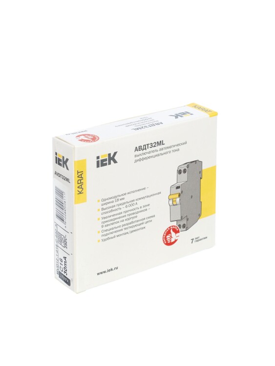Автоматические выключатели дифференциального тока АВДТ32МL для однофазных сетей в одномодульном исполнении (18мм) предназначены для защиты человека от поражения электрическим током при повреждении изоляции электроустановок, а также для защиты от перегрузки и короткого замыкания в сетях переменного тока напряжением 230 В и частотой 50 Гц.