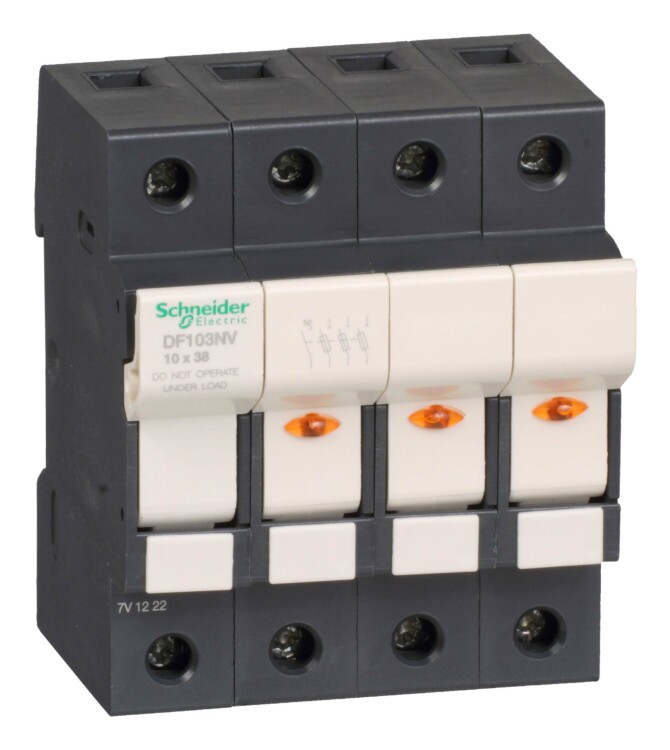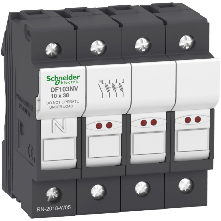 Разъединитель-предохр.TeSyS, 3p N 32A, предохр. 10x38 мм, указатель сраб.. диапазон: TeSys - наименование изделия: TeSys DF - тип устройства или его аксессуаров: предохранитель-разъединитель - краткое название устройства: DF10 - описание полюсов: 3P + N. Преимущества: Простая и эффективная защита!. Плавкие предохранители – надежное и эффективное решение для защиты слаботочного оборудования от короткого замыкания, которое может причинить серьезный ущерб установкам и представлять угрозу безопасности персонала и оборудования, а также важной продукции. Плавкие предохранители – и решение для защиты слаботочного оборудования от короткого замыкания, которое может причинить серьезный ущерб установкам и представлять угрозу безопасности персонала и оборудования, а также важной продукции.... применения: Промышленность, инфраструктура, здания и т.д.: Изделие специально предназначено для использования в электрических установках для распределения, управления или пускателей двигателей....