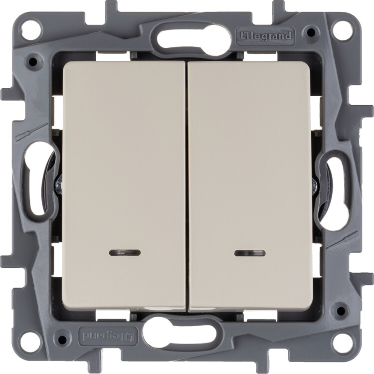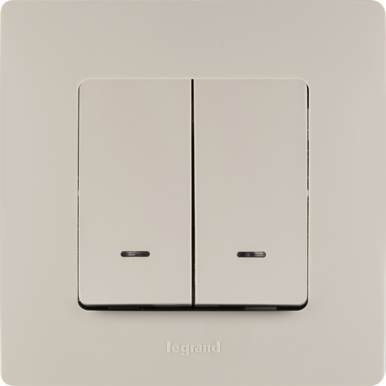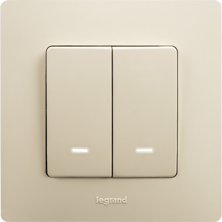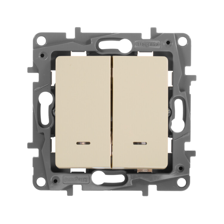 Выключатель двухклавишный Legrand Etika 672304 (10 А, IP20) скрытой установки, с подсветкой, слоновая кость