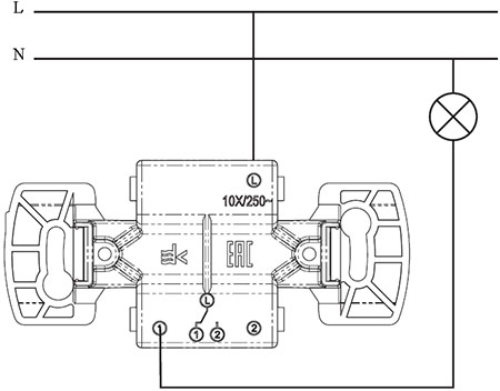 * АХ означает способность переключателя работать с реактивной нагрузкой номинальным током 10 А, то есть с люминесцентными светильниками.