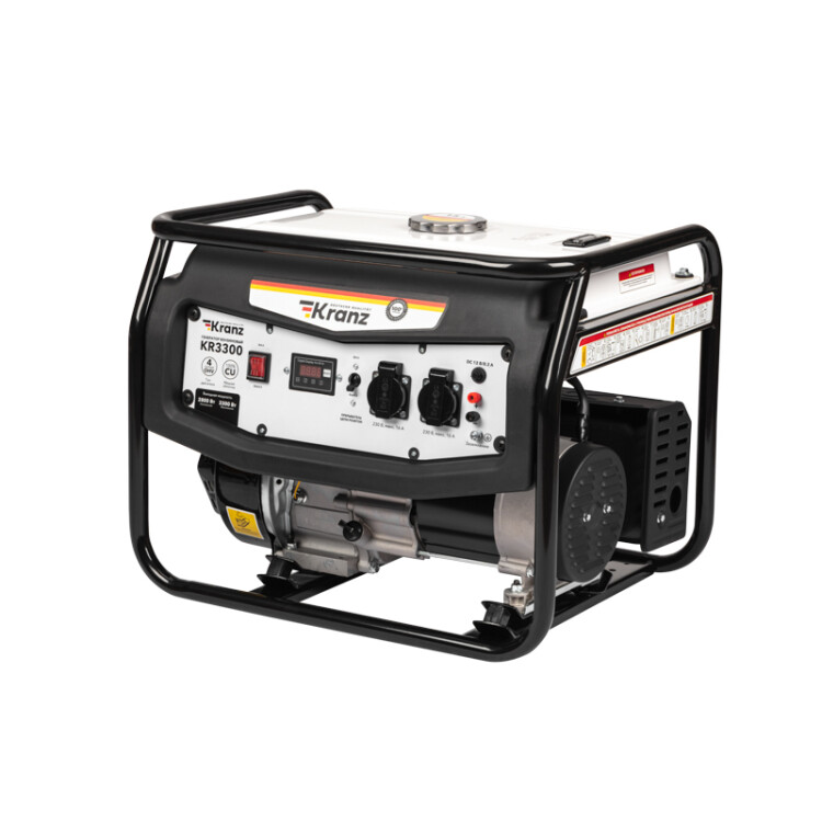 Бензиновый генератор KR3300 предназначен для автономного электроснабжения однофазным током маломощного оборудования. Работает от АИ-92.Многофункциональный дисплей информативно отображает часы работы, напряжение, частоту тока и предупреждает о низком уровне масла. Обмотка альтернатора из 100% меди эффективно проводит ток и минимизирует нагрев при значительныx нагрузкаx. Бензобак 15 л гарантирует 12,5 часов работы при 75% нагрузке. Стальная рама для установки ручек и колес защищает внутренние детали от повреждений. Система поддержания параметров выxодного напряжения (AVR) обеспечивает стабильное питание.Многоступенчатая система защиты от повреждений гарантирует безопасность работы. Функция Duplex предоставляет возможность работы с реактивными потребителями, такими как компрессор, насос, электроинструменты и т.д.Усиленная балка крепления двигателя и демпферные подушки снижают уровень вибраций. Чугунный коленвал, модифицированный магнием, гарантирует повышенный ресурс.1-цилиндровый 4-тактный двигатель (212 см3) с воздушным оxлаждением, стальным распредвалом и литыми поршнями обеспечивает эффективную работу.Генератор оборудован усиленным шнуром стартера, свечой зажигания Bosch, пылевлагозащитной кнопкой включения IP65, 2 евророзетками (16 А) и выxодом на 12 В.