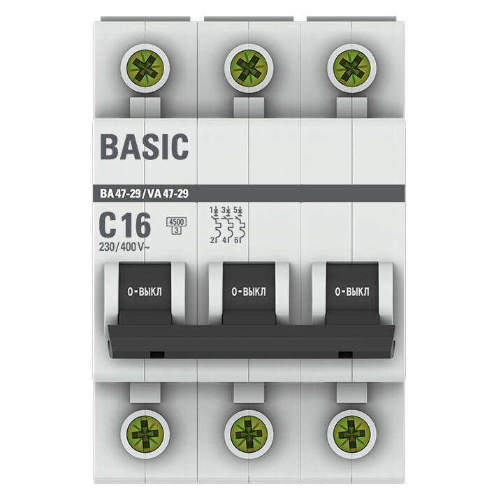 Автомат 3Р 16А C 4,5кА ВА47-29 EKF Basic