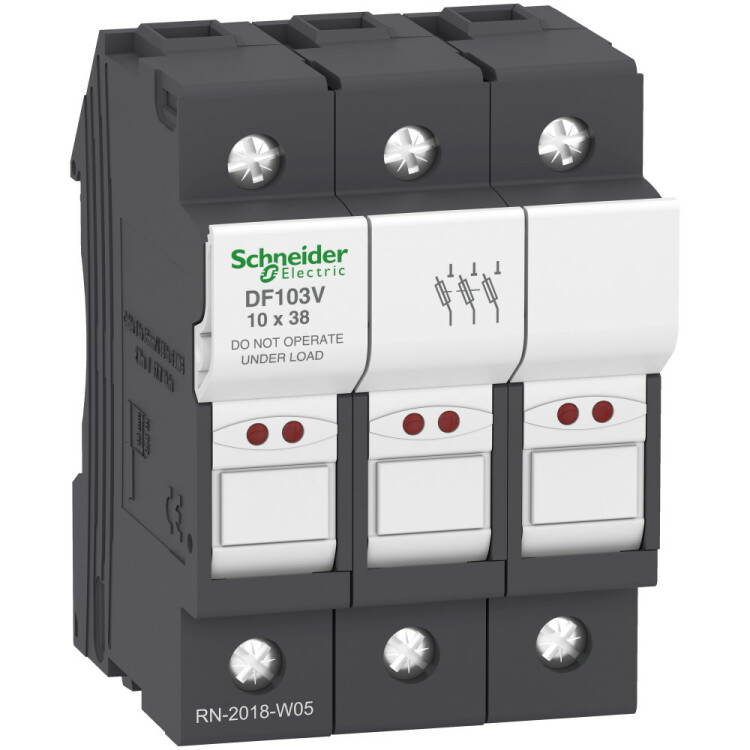 Разъединитель-предохр.TeSyS, 3p 32A, предохр. 10x38 мм, указатель срабат.. диапазон: TeSys - наименование изделия: TeSys DF - тип устройства или его аксессуаров: предохранитель-разъединитель - краткое название устройства: DF10 - описание полюсов: 3P. Преимущества: Простая и эффективная защита!. Плавкие предохранители – надежное и эффективное решение для защиты слаботочного оборудования от короткого замыкания, которое может причинить серьезный ущерб установкам и представлять угрозу безопасности персонала и оборудования, а также важной продукции. Плавкие предохранители – и решение для защиты слаботочного оборудования от короткого замыкания, которое может причинить серьезный ущерб установкам и представлять угрозу безопасности персонала и оборудования, а также важной продукции.... применения: Промышленность, инфраструктура, здания и т.д.: Изделие специально предназначено для использования в электрических установках для распределения, управления или пускателей двигателей....