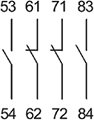 | Количество и вид контактов | 2 нормально разомкнутых (2з) + 2 нормально замкнутых (2р) |