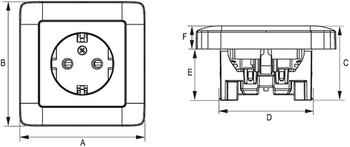 розетка силовая с заземляющим контактом, без защитных шторок |