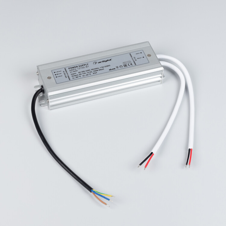 Источник напряжения с гальванической развязкой для светодиодных изделий. Входное напряжение 200-240 VAC. Выходные параметры: 12 В, 12,5 А, 150 Вт. Герметичный алюминиевый корпус IP 67. Рабочая температура -30… 50C°. Габаритные размеры длина 202 мм, ширина 67 мм, высота 34 мм. Совместим с диммерами с частотой ШИМ более 5кГц. Гарантийный срок 3 года.