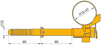 Дюбельная часть арматуры устанавливается в отверстие d 12 мм, фиксируется гвоздем.