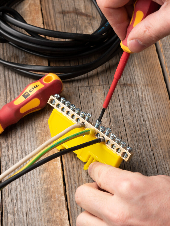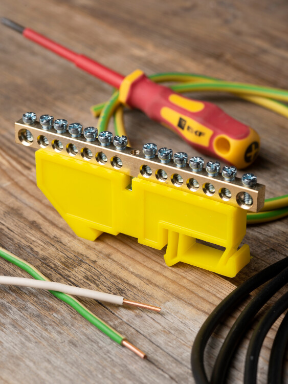 Шина нулевая 6*9 14групп DIN-изолятор типа "Стойка" желтый на DIN-рейку EKF