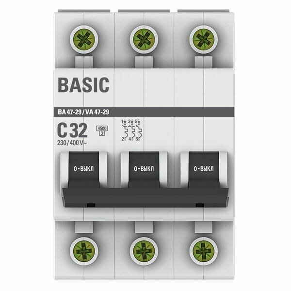 Автомат 3Р 32А C 4,5кА ВА47-29 EKF Basic
