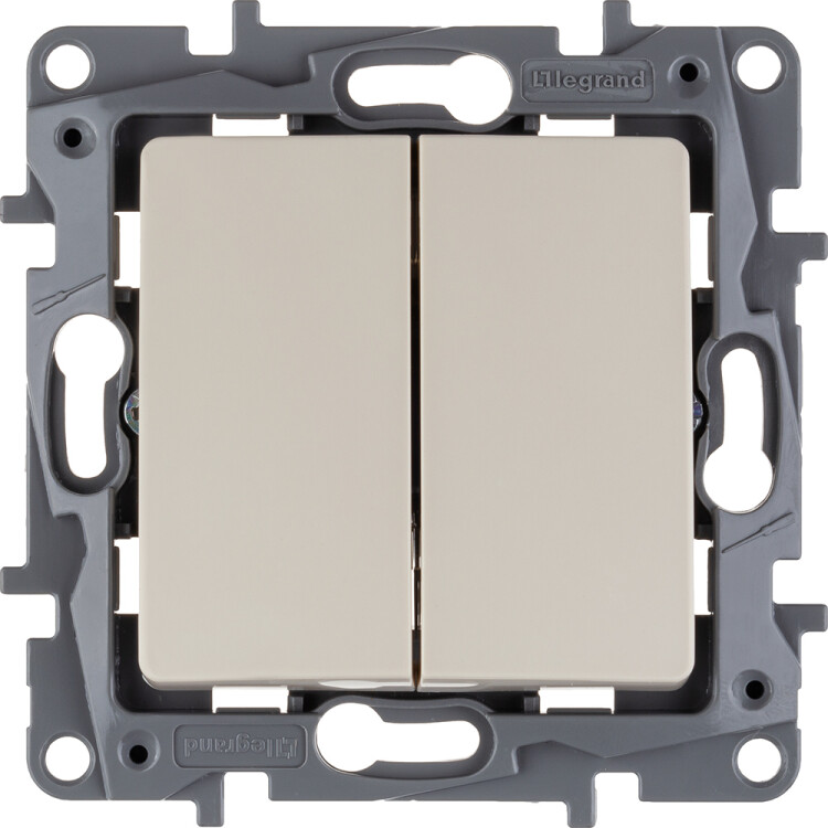 Выключатель двухклавишный Legrand Etika для скрытого монтажа, номинальный ток 10 А, цвет слоновая кость ,предназначен для управления двумя электрическими цепями.
