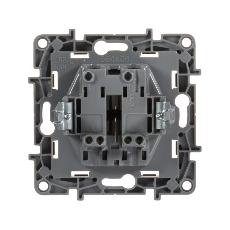 - Острые крепёжные лапки с широким углом раскрытия обеспечивают надёжную фиксацию в монтажной коробке