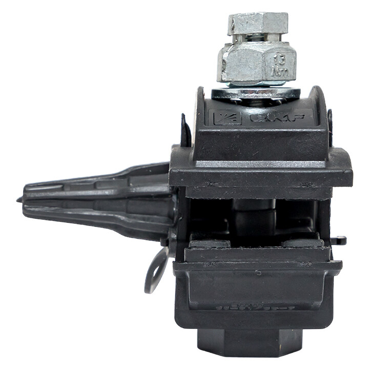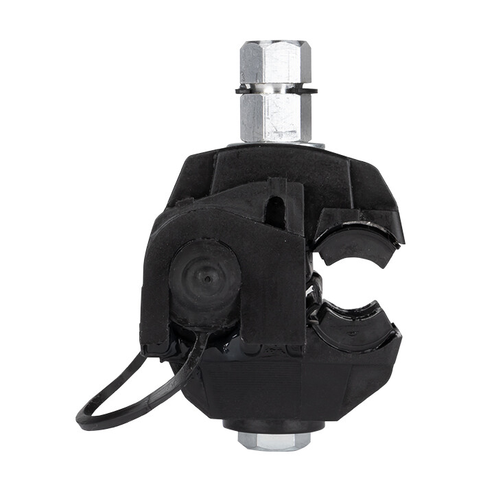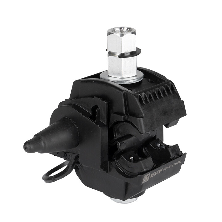 Зажим типа p-2x-95 предназначен для герметичного электрического соединения ответвительной линии СИП с магистралью. Контакт с изолированным проводом обеспечивается прокалыванием изоляции. При достижении момента, необходимого для создания надежного электрического контакта проводов, происходит срыв головки болта. Контактные пластины изготовлены из алюминиевого сплава. На прокалывающие элементы нанесена контактная смазка. Болт изолирован от контактных деталей зажима. Зажим устойчив к ультрафиолетовому и солнечному излучению, высоким и низким температурам, коррозии и агрессивным атмосферным воздействиям.