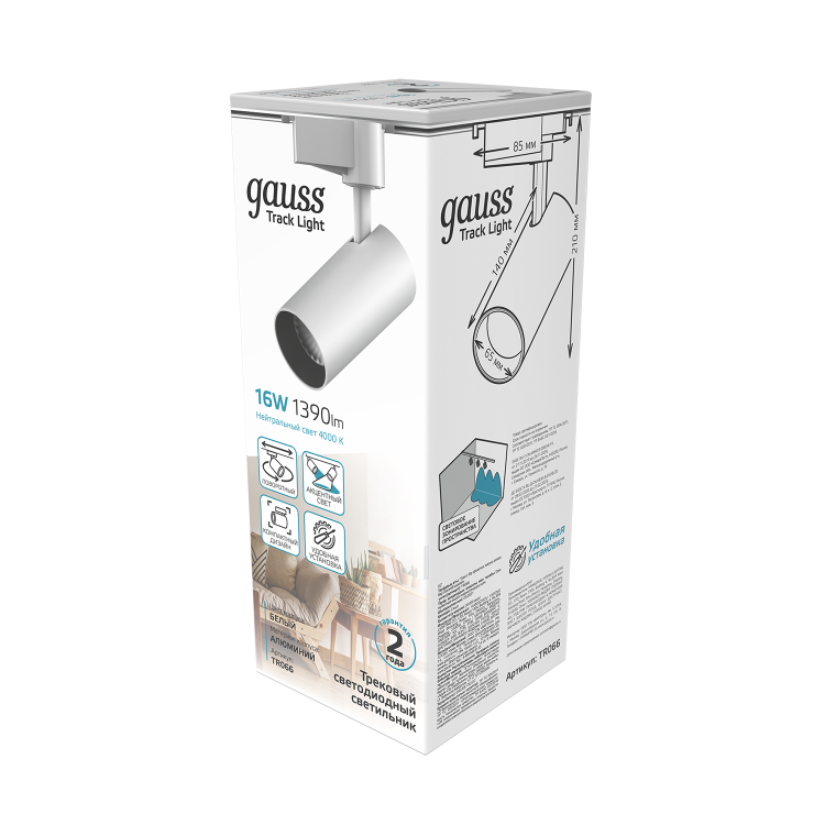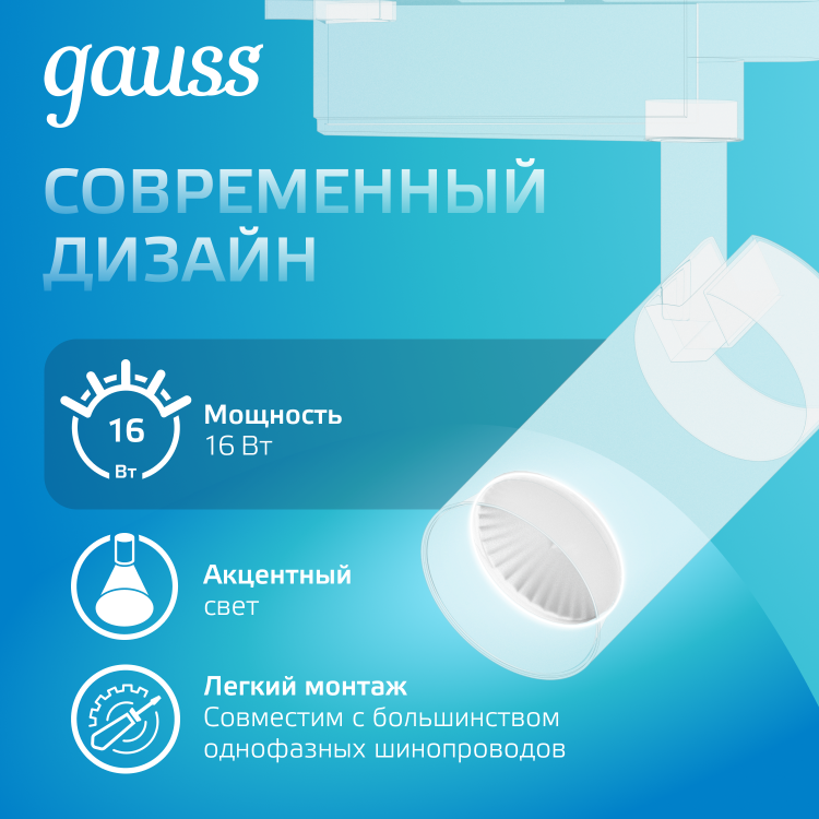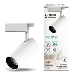 Светильник трековый Gauss цилиндр 16W TR066 имеет компактный дизайн, угол поворота 360° и оптимальный наклон в вертикальной плоскости. Это очень пластичный светильник для акцентного освещения отдельных зон жилых и нежилых помещений и для точного функционального освещения: журнальный и рабочий стол, гардероб, зеркала, интерьерные цветы и другие предметы интерьера, требующие дополнительного направленного света. Световой пучок 24°, яркость 1390лм, цветовая температура 4000К. Цвет корпуса белый, материал алюминий. Встраивается в трековые системы Gauss.