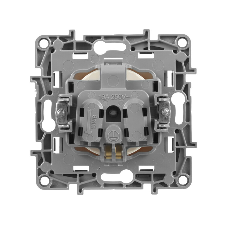 В силовых розетках надежность фиксации проводов обеспечивается с помощью гайки с насечками. В выключателях / переключателях гайка имеет специальный профиль для обеспечения одновременного зажима двух проводов разного сечения. |