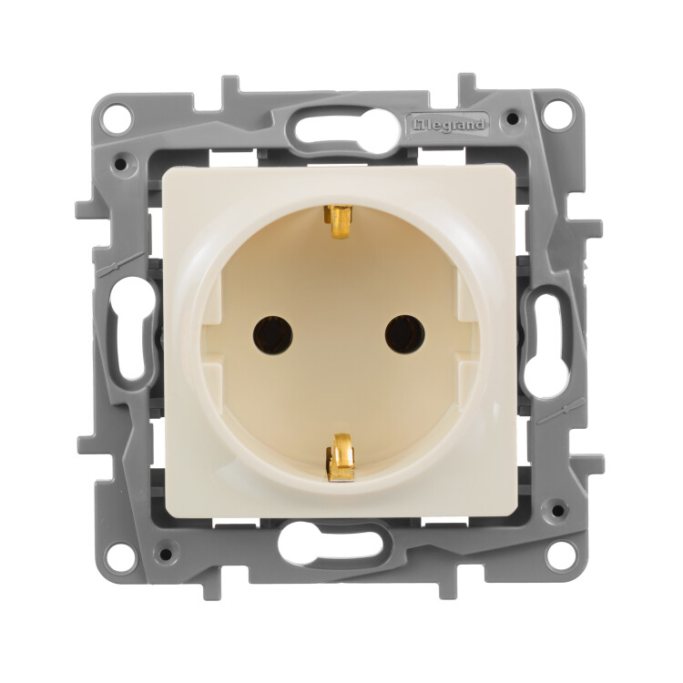 Розетка одноместная Legrand Etika 672321 (2К+З, винтовые клеммы) c заземлением, слоновая кость