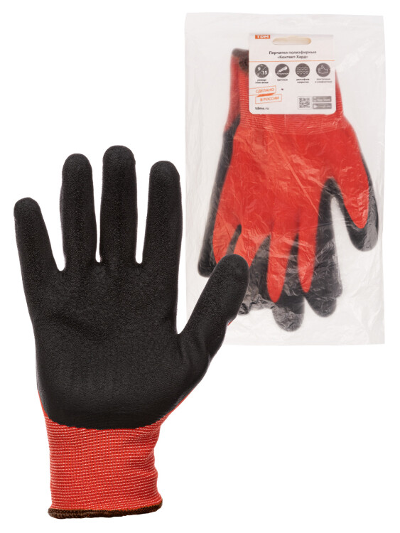 Покрытие из нитрильного латекса (серия «Контакт-Ойл») и рельефное покрытие из вспененного латекса (серия «Контакт-Хард») обеспечивает хорошее сцепление со скользкими поверхностями, гарантируя надёжный хват