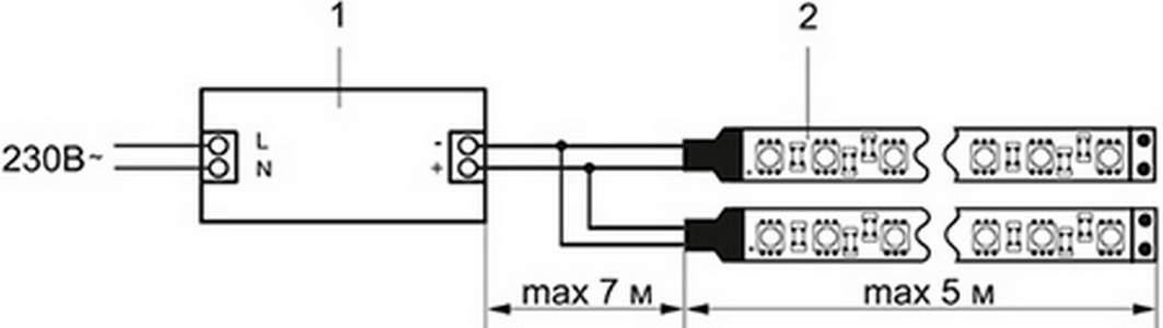 Суммарная мощность подключаемых лент не должна превышать мощность блока питания.