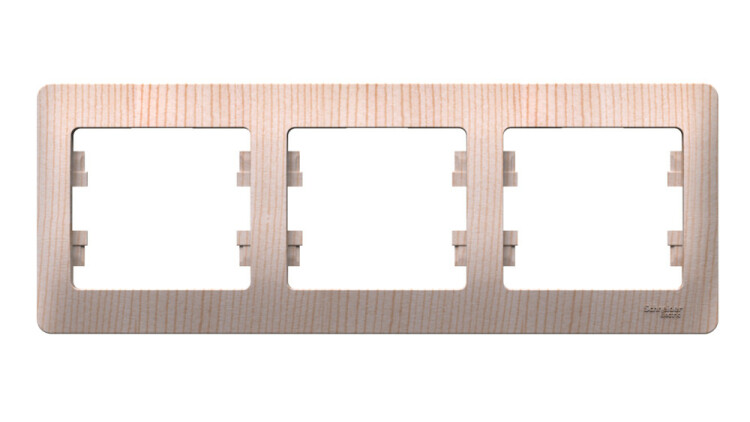Рамка Systeme Electric (ранее Schneider Electric) серии Glossa (цвет сосна) трёхместная. Устанавливается в горизонтальном положении. Выполнена из материала PС+ASA, стойкого к УФ-излучению и появлению царапин. Позволяет гармонично вписать электроустановочное изделие в интерьер помещения.