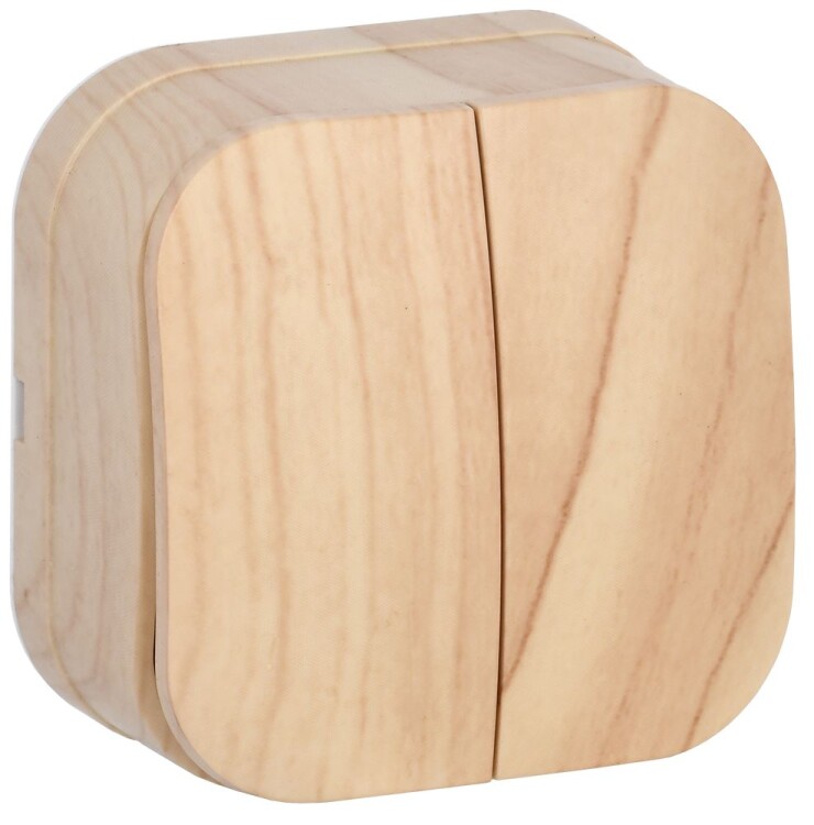 Выключатель двухклавишный IEK ВС20-2-0-ХС Glory (10 А, IP20) открытой установки, сосна