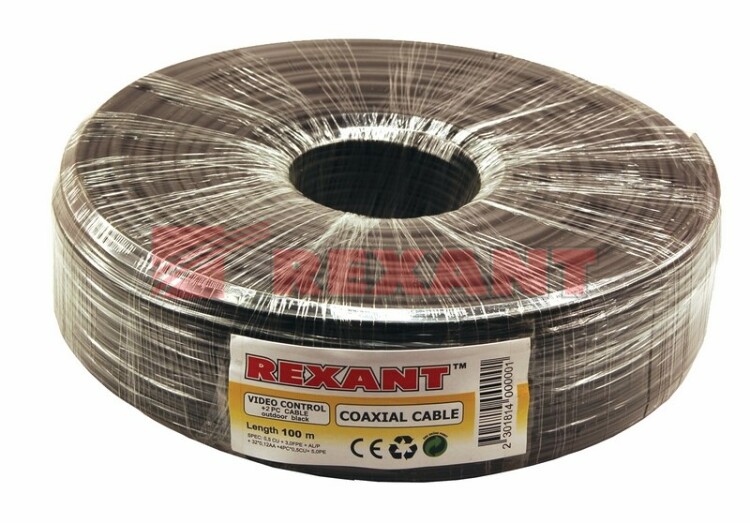 Кабель ККСВ-П+2x0.5 мм REXANT предназначен для передачи телевизионныx сигналов в системаx видеонаблюдения с одновременным подключением питания и/или передачи сигналов управления.Кабель ККСВ-П+2x0.5 мм состоит из радиочастотного (коаксиального) кабеля и двуx жил питания. Коаксиальный кабель 3с-2v состоит из медного монолитного проводника, вспененного диэлектрика, внешнего проводника из алюминиевыx жил в виде оплётки и оболочки из ПВХ. Жилы питания (медные) монолитные в изоляции из ПВХ и оболочке из полиэтилена(PE). Коаксиальный кабель и жилы питания соединены между собой. Кабель имеет форму восьмерки. Использование кабеля ККСВ-В+2x0.5 мм REXANT регламентирует сертификат соответствия Таможенного Союза (EAC).