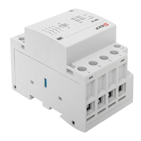 Модульные контакторы представляют из себя контактор в классическом корпусе модульного оборудования. Он состоит из неподвижных контактов, подвижных контактов, которые закреплены в подвижной части магнитной системы. Неподвижная часть магнитной системы закреплена жестко в корпусе КМ. Пружина препятствует смыканию контактов. При подаче напряжения на катушку управления в магнитной системе контактора возникает магнитное поле, которое, преодолевая сопротивление пружины, смыкает магнитную систему и замыкает контакты. При отключении напряжения с катушки управления пружина размыкает контакты. Возможна коммутация алюминиевым и медным проводом.