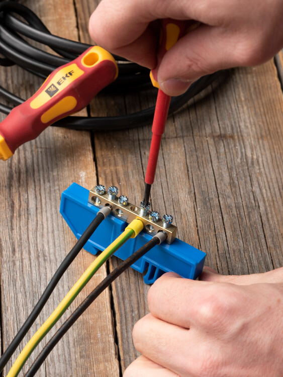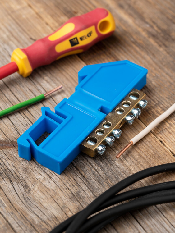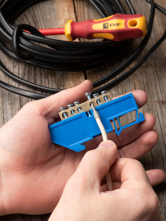 Шина нулевая 6*9 6групп DIN-изолятор синий на DIN-рейку EKF