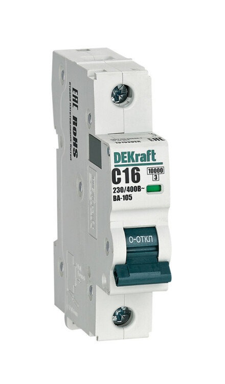 Автоматический выключатель серии ВА-105 DEKraft; 1P; ном. ток 16 А; характеристика C; откл. способность 10 кА; ширина модуля 18 мм. Аппараты имеют механизм мгновенной коммутации, 6 монолитных заклепок, которые повышают прочность корпуса. Боковые каналы охлаждения повышают стабильность работы при высоких температурах окружающей среды. Есть возможность установки дополнительных аксессуаров с левой стороны устройства. Аппарат на 100% совместим с корпусами и оболочками DEKraft и Systeme Electric.
