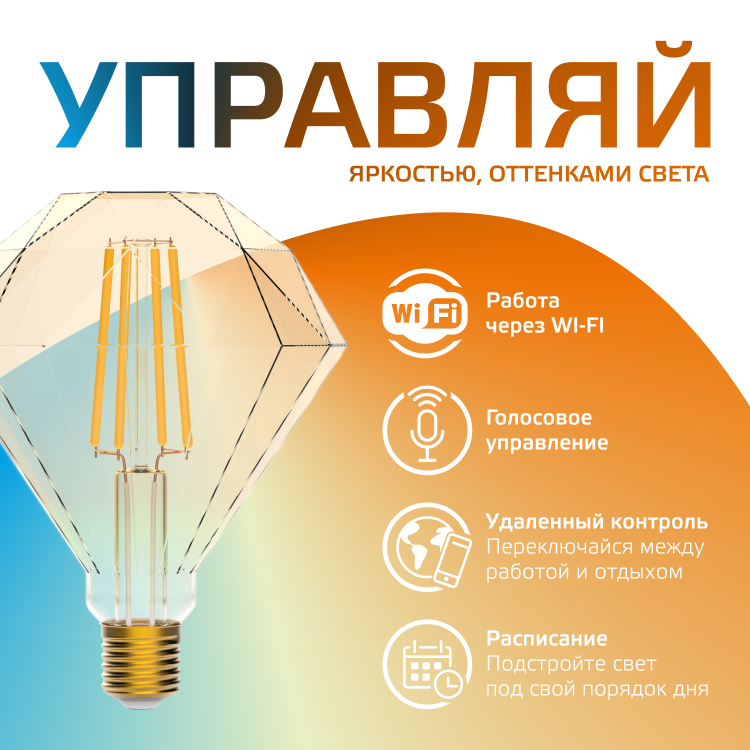 Лампа умная Е27 6,5Вт 2000-5500K 720лм Diamond золотистая филамент диммер Gauss Smart Home