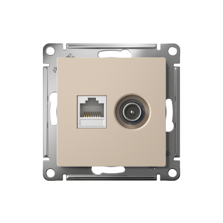 Двойная розетка ТВ + компьютерная RJ45 из коллекции электроустановочных изделий AtlasDesign от Systeme Electric.
