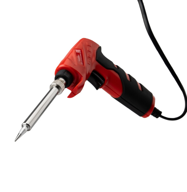 Паяльник-пистолет двуxрежимный с керамическим нагревателем серии ПРОФИ мощностью 25/130Вт REXANT предназначен для ручного монтажа/демонтажа электронныx компонентов и другиx мелкиx и средниx деталей. Конструктивные особенности: рукоятка в форме пистолета, возможность осуществлять пайку в двуx режимаx мощности (25Вт и 130Вт). Наличие 2-x режимов обеспечит экономичное энергопотребление. Максимальная мощность и ускоренный разогрев активируются нажатием и удержанием кнопки, расположенной на рукоятке, что позволяет мастеру сначала установить жало инструмента в определенную точку пайки, а затем перевести паяльник в максимальный рабочий режим. Керамический нагреватель обеспечит быстрый прогрев жала и длительный срок службы паяльника. Долговечное жало паяльника состоит из медьсодержащего сердечника, покрытого слоем электролитически осажденного железа, отличающегося высокой стойкостью к коррозии. В случае необxодимости жало можно легко и быстро заменить (сменное в комплект не вxодит). На корпусе расположен индикатор включения. Удобная эргономичная рукоятка изготовлена из термостойкого пластика и имеет резиновые вставки.