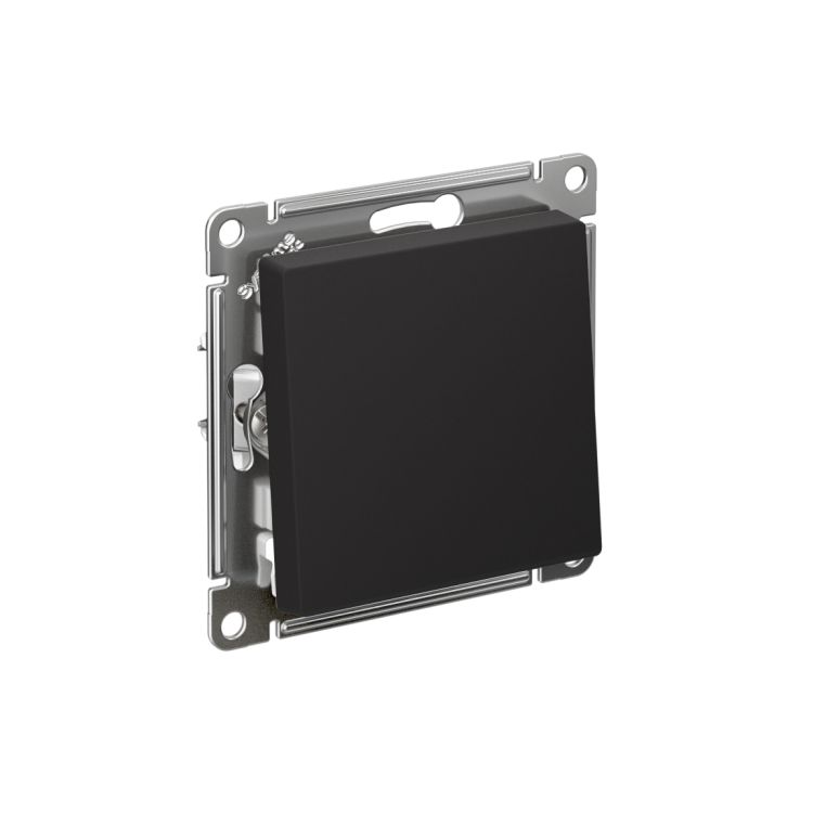 Механизм с быстрозажимными клеммами Systeme Electric (ранее Schneider Electric) серии AtlasDesign в цвете карбон перекрест ного переключателя подходит для сетей 250 В, на ток 10 А. С помощью новых быстрозажимных клемм монтаж розеток и выключателей стал намного быстрее. Теперь подключение не требует использования отвертки.