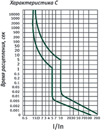 | Кривая отключения (диапазон токов мгновенного расцепления) | C |