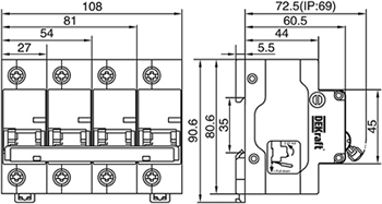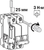 Клеммы, рассчитанные на сечение провода до 35 кв.мм, позволяют защищать цепи с высокими токами нагрузки (до 100 А). | ![]() |