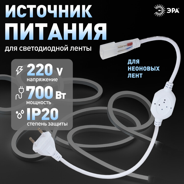 Источник питания - необходим для подключения светодиодной неоновой ленты к сети питания (розетке 220В). Напряжение 220В. Мощность 700 Вт.