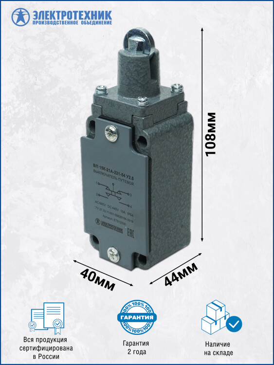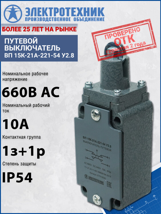 Выключатель концевой толкатель с роликом IP54 ВП 15К-21А-221-54 Электротехник