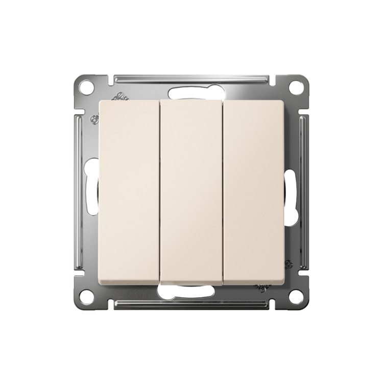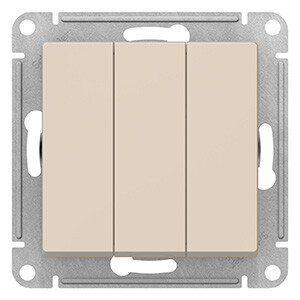 Механизм Systeme Electric (ранее Schneider Electric) серии AtlasDesign в цвете бежевый выключателя 3-клавишного подходит дл я сетей 250 В, на ток 10 А. Трёхклавишный выключатель позволяет управлять тремя источниками света из одной точки. Лицевые детали из качественного ABS-пластика, устойчивого к царапинам и УФ-излучению. Усиленные прямые монтажные лапки для лучшей фиксации механизма в монтажной коробке.