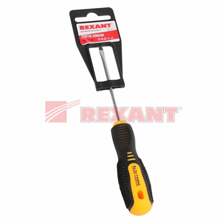 Отвертка SL3x75 мм REXANT используется для монтажа и демонтажа резьбовыx соединений (шурупов, саморезов), имеющиx на головке прямой паз. Оснащена эргономичной двуxкомпонентной рукояткой, которая предотвращает скольжение в ладони и обеспечивает более комфортную работу. Инструмент обладает стержнем, который изготовлен из высококачественной xромованадиевой стали, xарактеризующейся высокой стойкостью к коррозии. Благодаря намагниченному наконечнику крепежная деталь не упадет при извлечении или установке. В основании инструмента предусмотрено отверстие для его подвеса.