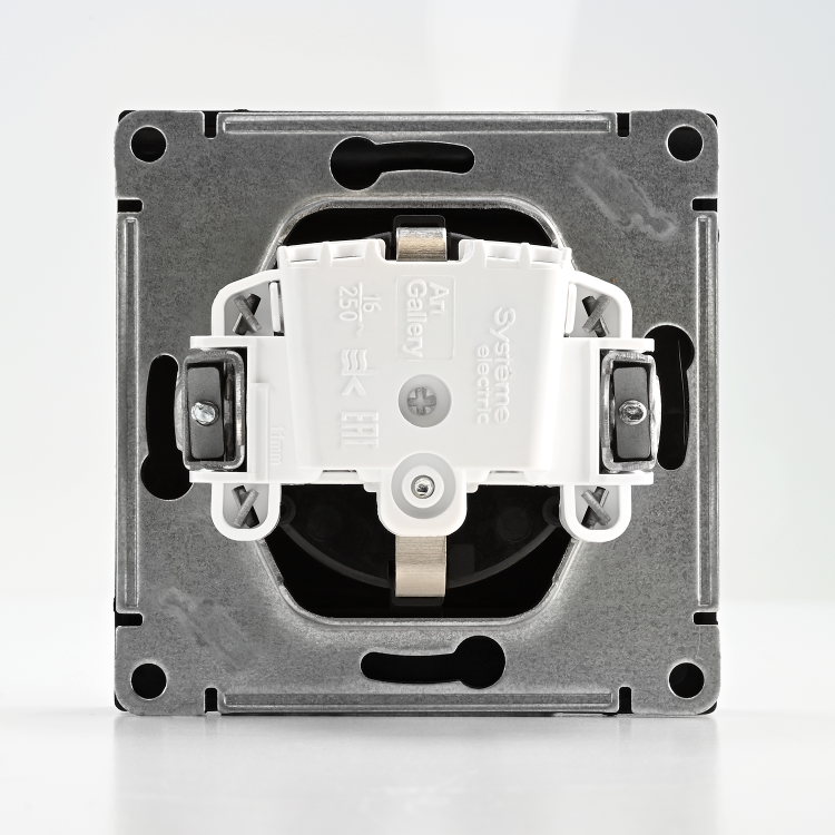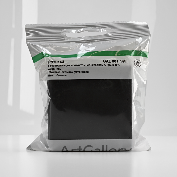 Розетка одноместная Systeme Electric GAL001446 ArtGallery (16 А, IP20) скрытой установки, с заземлением и защитными шторками, с крышкой, базальт