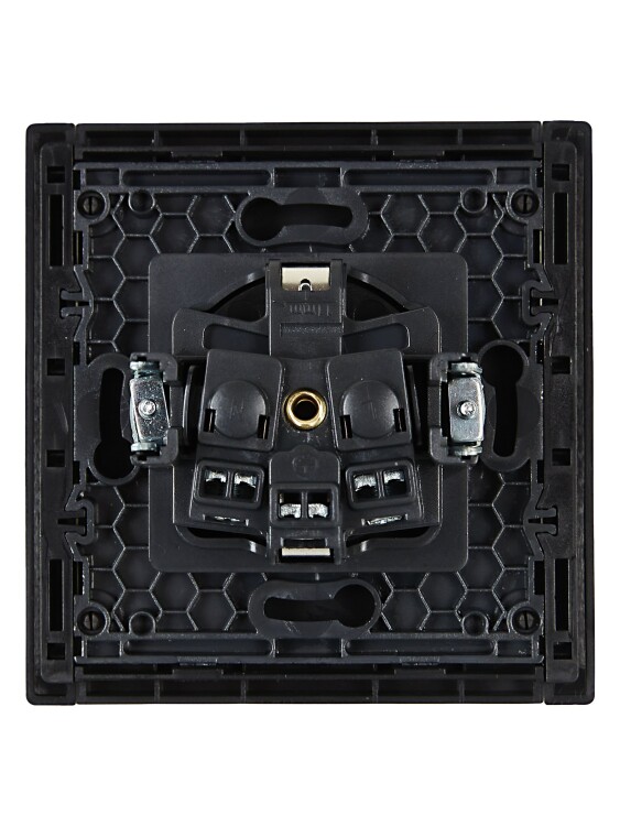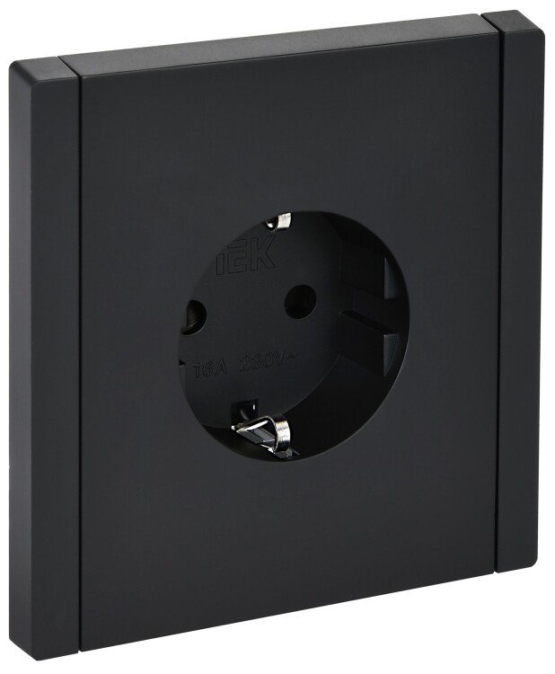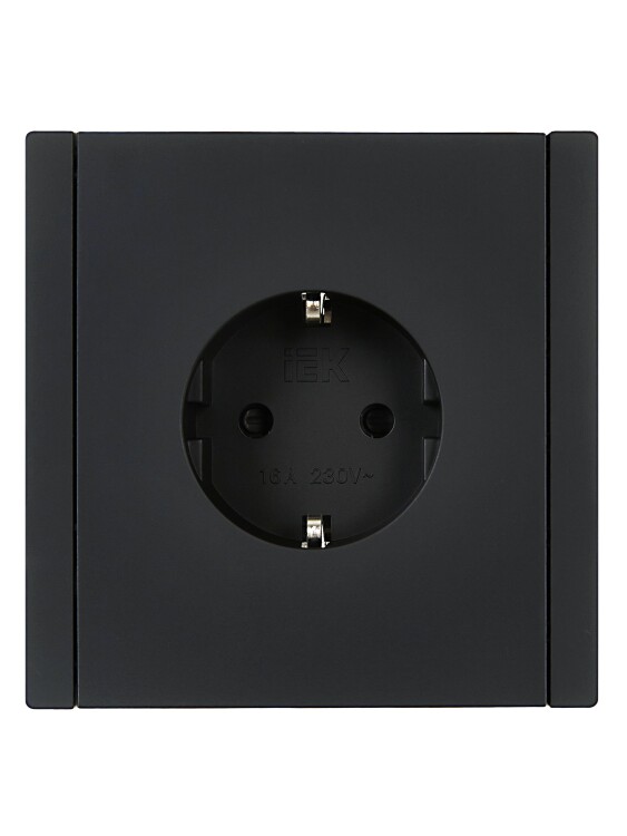 Розетка одноместная IEK FP115 Forte&Piano (16 А, IP20) скрытой установки, с заземлением и защитными шторками, черный